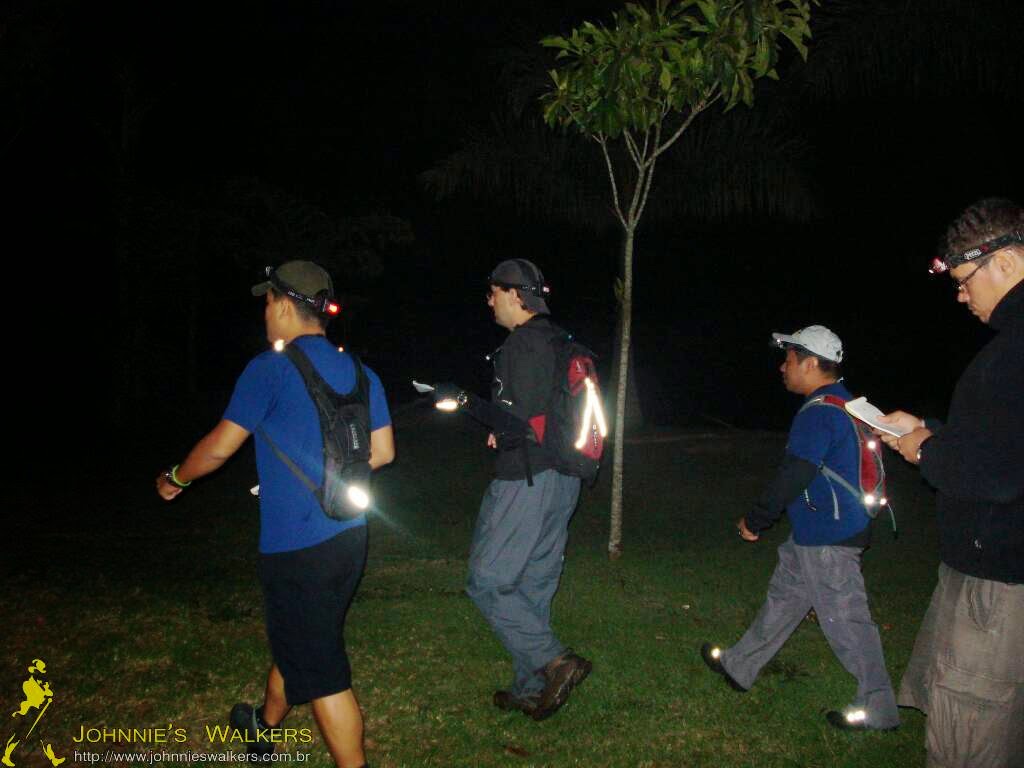 Descemos pela mata até a estrada de terra dentro do camping, na região das carretas de tanque (lugar meio feio, diga-se...), tentando tirar o atraso, mas de noite é sempre mais complicado.